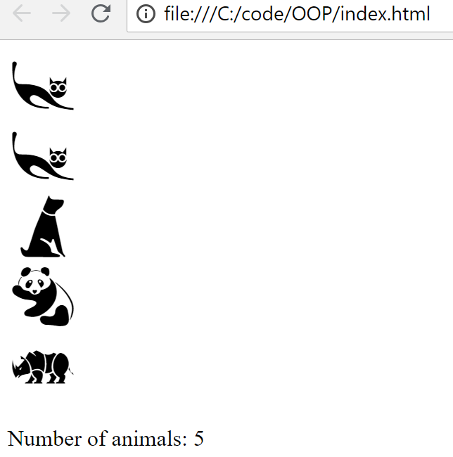 Compile the project and open index.html. You should now see the count after your rendered animals: